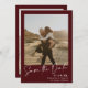 Save The Date Élégant script rouge bordeaux 2 photos enregistrer