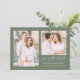 Annoncez vos nouveautés dans le style avec notre Elegant Script photo enregistrer la carte de date. L'élégant save the date card comporte 2 de vos photos fiançailles avec "save the date" dans un script de calligraphie moderne blanc contre un arrière - plan vert sage. Personnalisez le simple enregistrement de la carte de date en ajoutant vos noms, date mariage et emplacement du mariage. Le minimaliste enregistrer la carte date revient à un arrière - plan vert sauge foncé solide ou une couleur de votre choix.