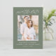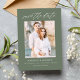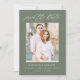 Annoncez vos nouveautés dans le style avec notre Elegant Script photo enregistrer la carte de date. L'élégante sauvegarde de la carte date dispose de "enregistrer la date" dans un script de calligraphie moderne blanc avec votre photo fiançailles affichée ci-dessous contre un arrière - plan vert sauge foncé. Personnalisez le simple enregistrement de la carte de date en ajoutant vos noms, date mariage et emplacement du mariage. Le minimaliste enregistrer la carte date revient à un arrière - plan vert sage solide ou une couleur de votre choix.