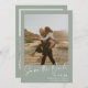 Elégant script calligraphie simple 2 photos muté sauge vert et blanc mariage enregistrer la date.