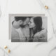 Partagez les nouvelles de votre fiançailles et de votre mariage à venir avec cette photo horizontale enregistrer la carte de date avec un élégant traitement de type en blanc qui se trouve au bas d'une photo horizontale. L'arrière est neutre, avec un subtil motif en grille. La couleur peut être ajustée en cliquant sur "Personnaliser".