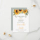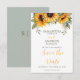Élégant Script Sunflower Wedding Enregistrer la carte de date. Profitez du charme de la simplicité avec notre mariage de tournesol minimaliste et élégant, économisez la carte de date. Doté d'un arrière - plan vert clair apaisant à l'arrière de l'invitation avec des lettres monogrammes, le design est orné de trois gracieux tournesols sur le devant, symbolisant le bonheur et la chaleur. Le texte de l'invitation est élégamment placé dans un brun riche, parfait en complément du thème naturel. Idéale pour un mariage rustique ou de jardin, cette invitation trouve un équilibre parfait entre raffinement sobre et beauté naturelle.