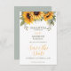 Élégant Script Sunflower Wedding Enregistrer la carte de date. Profitez du charme de la simplicité avec notre mariage de tournesol minimaliste et élégant, économisez la carte de date. Doté d'un arrière - plan vert clair apaisant à l'arrière de l'invitation avec des lettres monogrammes, le design est orné de trois gracieux tournesols sur le devant, symbolisant le bonheur et la chaleur. Le texte de l'invitation est élégamment placé dans un brun riche, parfait en complément du thème naturel. Idéale pour un mariage rustique ou de jardin, cette invitation trouve un équilibre parfait entre raffinement sobre et beauté naturelle.
