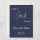 Cette élégante faire-part de mariage bleu marine est parfaite pour un mariage moderne. le design simple comprend une élégante calligraphie blanche sur un arrière - plan bleu.