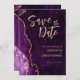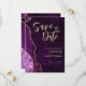 Mariage élégant enregistrer la carte de date avec agate de marbre violet avec mariage de parties scintillant d'or enregistrer la carte de date.