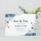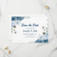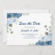 Save The Date Elégante aquarelle bleu Rose Mariage floral