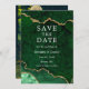 Elégante aquarelle moderne émeraude vert et or marbre Géode d'agate Enregistrer la carte de date - Photo Retour