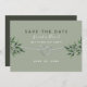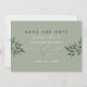Simple, élégant, rustique sage vert mariage Enregistrer la date Invitation avec faux coeur de corde en argent, aquarelle verte et script de calligraphie moderne.