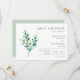 La date a été décidée mais vous n'avez pas encore finalisé les arrangements. N'attendez pas que tous les détails soient finalisés ou que vous finissiez par avoir des amis et une famille qui ne peuvent pas y assister parce qu'ils ont réservé autre chose. Au lieu de cela, envoyez une carte 'enregistrer la date' afin que vos amis et votre famille puissent mettre au crayon la date et attendre avec impatience que les détails suivent (à savoir l'invitation formelle et d'autres détails). Ils peuvent aussi commencer à planifier leur tenue mariage et ils seront reconnaissants pour les têtes en haut. Cette carte 'enregistrer la date' peut être personnalisée avec l'inclusion de vos propres détails. Le design est minimaliste et joli, sobre mais frappant, avec des aquarelles vertes, le symbole parfait de la nature et un nouveau chapitre.