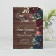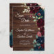 Save The Date Elégante Bourgogne & Fleurs Bleues Marine Bois