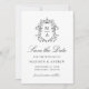 Annoncez votre prochain mariage à vos amis et à votre famille avec cette élégante Chinoiserie Black and White Floral Victorian Enregistrer la date. Ce design présente vos initiales monographiques entourées d'une crête de chinoiserie noire complexe et de motifs baroques. "Save the Date" est présenté dans un script de calligraphie noir avec les détails de votre mariage ci-dessous. Le dos de la carte présente un motif floral d'inspiration chinoise noir et blanc.