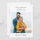 Cette 2 photo enregistrer l'annonce de la date dispose d'un design simple mais élégant sur un arrière - plan blanc. L'avant offre une photo carré avec les noms apparaissant dans un texte de style manuscrit tendance. L'arrière offre une photo supplémentaire avec du texte supplémentaire pour plus de détails mariages.
