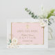 Save The Date Elégante Fleurs d'or blanc Croix Baptême fille