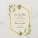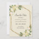 save the dateélégantbotaniquemariageverdurefloralrosescadre géométrique doréaquarelleannonce chic