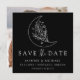 Save The Date Elégante Lune Botanique et Étoiles Noir et Blanc