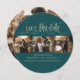 Elégant turquoise et or mariage 4 photo enregistrer les cartes de date avec un titre de script en faux or moderne. Personnalisez facilement ce mariage turquoise enregistrez la date avec vos images et les détails du mariage, y compris un site Web mariage.