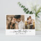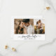 Élégant minimaliste de la typographie moderne Script 2 Collage de photos Enregistrer les cartes de dates en noir et blanc. Ce design romantique et délicat est parfait pour un mariage moderne. Caractéristiques 2 grille photo collage, une calligraphie lunaire à la main lettré style swash police calligraphie ou script de typographie et un coeur d'amour. Facile à personnaliser avec vos détails et photos mariages.