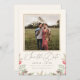 Capturez l'essence de votre journée avec notre carte de dates. Chic script calligraphie annonce "sauver la date" contre un élégant arrière - plan beige et votre photo encadrée par une fausse bordure en feuille d'or. Doté d'une aquarelle de verdure hivernale au fond, y compris les baies sèches, les cônes de pin et le feuillage festif. Au contraire, customisez-le avec votre code QR et les détails du site Web mariage.