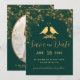 Save The Date Élégantes Fleurs Vertes et Dorées Oiseaux Photo Pe