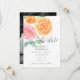 Une charmante et délicate annonce de mariage floral pour sauver la date, avec votre photo de fiançailles préférée au verso. Ce design présente de grandes roses aquarelles orange et rose, avec des feuilles vertes, superposées avec "sauver la date" dans une police de style calligraphie grise. Personnalisez avec vos détails de mariage en police grise.