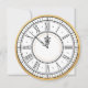 Cette invitation à la fête du Nouvel An présente une horloge noire avec des chiffres romains sur un arrière - plan blanc. Autour du bord de l'invitation est une fausse bordure d'or. L'intérieur de l'horloge dit "Embrasse-moi à minuit." Tous les détails de la fête sont au verso et peuvent être customisés pour répondre aux besoins de votre événement.