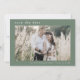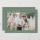 Cette photo moderne montagne sauge simple mariage enregistrer la carte de date de la Collection Emelia est parfait pour un mariage de destination boisée. Le design vert sauge foncé présente une typographie rustique et simple avec une atmosphère de montagne boisée. Personnalisez l'avant de la carte avec votre photo fiançailles préférée, vos noms et votre date de mariage. Ajoutez l'adresse de votre site Web mariage au verso de la carte.
