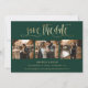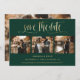 Elégant vert émeraude et or mariage 4 photo enregistrer les cartes de date avec un titre de script en faux or moderne. Personnalisez facilement ce mariage vert émeraude sauvegardez la date avec vos images et les détails mariages, y compris un site Web mariage.
