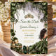 Save The Date Emerald Green Golden Tiara Floral Quinceañera