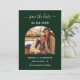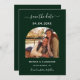 Un mariage moderne Save the Date carte photo. Un arrière - plan vert émeraude, texte blanc. Personnalisez et ajoutez vos photos et détails de mariage.