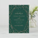 Personnalisez facilement cet or rose moderne et mariage vert émeraude sauvez le modèle de date. Cette conception unique est dotée d'un cadre géométrique et d'une bordure de parties scintillant de confetti avec une police de script de calligraphie à la mode. Les dessins sont des illustrations et des graphiques imprimés à plat - PAS DE PARTIES SCINTILLANT RÉELLE OU DE FOIL.