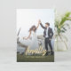 La carte de sauvegarde de mariage drôle "Enfin en train de se marier" comporte un mélange de calligraphie de faux or et de typographie moderne avec un espace pour une photo. Au dos de la carte postale, le design propose des options pour plus de détails. Personnalisez le design en remplaçant le texte par vos informations.
