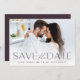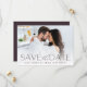 Annoncez votre date de mariage dans un style inoubliable avec ces photos élégantes et modernes enregistrer les cartes de date, avec un fond de saignement plein horizontale ou une photo orientée paysage avec "enregistrer la date" superposé en lettres de prune riche le long du fond. Vos noms, date mariage et emplacement du mariage apparaissent en dessous dans les lettres modernes. Personnalisez le dos avec des détails supplémentaires, comme votre site Web mariage.
