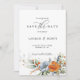 Ce magnifique Save the date présente un beau motif floral dans les tons bleu et orange, créant une parfaite harmonie des couleurs qui impressionnera vos invités. C'est donc un excellent choix pour les couples qui veulent ajouter une touche de couleur à leur enregistrement de la date et en faire un unique.