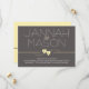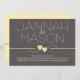 Style moderne enregistrer la date avec deux coeurs jaunes et la conception de texte sur gris. Customisez le texte au besoin pour annoncer votre prochain mariage.