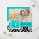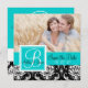Turquoise, noir et blanc damas motif photo enregistrer les cartes de date monogrammed avec votre monogramme, initial et noms carte plat avec votre photo fiançailles sur le devant et votre texte sur le dos. Modèle entièrement personnalisable. Elke Clarke© Une belle façon d'annoncer à vos invités votre jour de mariage avec ce design moderne avec des éléments traditionnels tels que le motif vintage damassé. Pour d'autres couleurs damas, veuillez contacter luxuryweddinginvitations@gmail.com