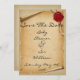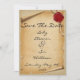 L'ère de la chevalerie et de l'romantisme : Parchemin médiéval Faux Parchemin Défiler Sceau de cire rouge Enregistrer la Faire-part Mariage Date. Réalisée avec une attention particulière aux détails, cette carte capte l'essence d'une époque révolue, avec un parchemin riche, vieilli (faux), orné d'accents noirs et d'un authentique sceau de cire rouge et d'élégantes calligraphies.