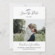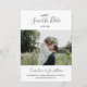 Envoyez vos dates dans le style avec cette belle carte avec votre photo, texte personnalisé et une simple lavande fleurie sprig. Le côté arrière est doté d'un motif géométrique subtil placé contre un arrière - plan gris clair (changez facilement la couleur de l'arrière - plan en cliquant sur la personnaliser et faites défiler vers le bas vers le sélecteur de couleurs. Belle et élégante, mais simple et classique, une date de sauvegarde qui complète tant de styles mariages d'aujourd'hui. Crédit photo : Joanne Nix, Unsplash