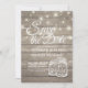 Enregistrer la date Modèles de la carte Faire-part de mariage - Élégant Enregistrer la date Script de lettrage et Vintage Mason Jar String Lights sur Rustic Wood Arrière - plan. Un design parfait pour votre grand jour. Tous les styles de texte, couleurs, tailles peuvent être modifiés selon vos besoins !