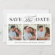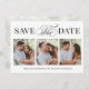 Ce design présente des caractéristiques sauver le carte photo date, parfait pour les mariages, avec un style minimaliste moderne, avec un simple noir et blanc, élégant, typographie, script de calligraphie design, un modèle de collage de quatre photos, un design classique classe.