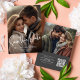 Ce design comprend un carte photo de date de sauvegarde parfait pour les mariages, avec un modèle photo simple, avec un style élégant, moderne minimaliste, classe, simple, avec un code QR scannable, et un style de script de calligraphie moderne.