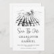 Un mariage vignoble terreux sauve la date, avec une typographie élégante et des rangées de raisins.