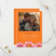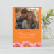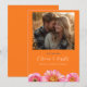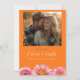 Annoncez votre mariage dans un style éclatant avec cette photo en couleur audacieuse "Save the Date" de la collection Vivid Vows. Une photo d'engagement préférée est mise en vedette, encadrée par un fond tangerine saturé et des florales roses vives le long du bas pour un look joyeux et moderne.