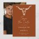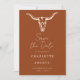 Enregistrez la date occidentale - avec une tête de cow-boy bohémien rustique sur un fond de terre cuite orange. Enregistrez la date est un design simple avec des lettres manuscrites et modernes pour un design minimaliste. Tous les éléments peuvent être modifiés.