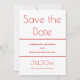 Enregistrez la Date avec un design blanc et rouge propre. Cela fait partie d'un ensemble de faire-part de mariage.