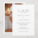 Un mariage élégant sauve la date avec un design simple avec une combinaison moderne de serif, sans serif et de polices de script.