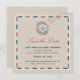 Une conception de courrier aérien de style moderne avec un timbre central indiquant "To have and to Hold, From this Day Forward" et une étoile de mer bleue sur le timbre. Des couleurs antiques de bandes de courrier aérien rouge foncé et bleu avec une bordure de crème légère pour la faire ressortir. Un fond de crème sablonneux et un motif blanc léger sur tout le fond pour donner l'impression d'une enveloppe de courrier aérien. Pour les demandes de modifications de conception personnalisées par le concepteur indépendant, veuillez envoyer un e-mail à paula@labellarue.com AVANT de personnaliser ou de passer une commande.