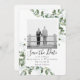 Faites savoir à vos amis et à votre famille que vous avez fixé une date pour votre mariage avec cette belle aquarelle eucalyptus Enregistrer la carte Date. La photographie des modèles est à des fins d'illustration et peut être changée en une de vos propres.