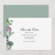 Script botanique moderne Eucalyptus Enregistrer la carte Date. Avec feuillage violet et vert avec typographie de script.
