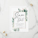 Ce mariage élégant, à l'exception du modèle date, présente un mélange sophistiqué d'éléments modernes et botaniques. La pièce maîtresse du design est une aquarelle magnifiquement rendue d'un cadre orné d'une végétation luxuriante d'eucalyptus dans les tons verts avec des touches d'émeraude, complétée par de subtiles touches d'or qui ajoutent une touche de luxe. Si les détails dorés sont un effet numérique plutôt qu'un véritable papier d'aluminium, ils dégagent la même richesse et la même élégance. Ce modèle de date est parfait pour les couples modernes qui apprécient l'élégance des motifs botaniques et veulent incorporer des éléments d'inspiration nature dans leur papeterie mariage. Il s'adresse à ceux qui apprécient une esthétique raffinée avec un soupçon de glamour, offrant une façon sophistiquée et personnelle d'annoncer leur journée spéciale. Que vous planifiez un mariage de jardin, une fête rustique ou une affaire urbaine chic, ce modèle est suffisamment polyvalent pour convenir à une variété de thèmes mariages.
