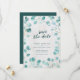 Cette sauvegarde de la date présente des feuilles eucalyptus avec les mots "enregistrer la date" dans le script tendance tout contre un arrière - plan en marbre clair sur le devant et une couleur vert foncé turquoise côté arrière. Personnalisez-le en remplaçant le texte de l'espace réservé. Pour plus d'options comme changer la police, sa taille et l'espacement entre les lettres cliquez sur le bouton "Personnaliser". *Veuillez noter que le filigrane Zazzle qui apparaît dans l'aperçu du zoom n'apparaîtra PAS sur le produit imprimé final. © Bois de rose et agrumes